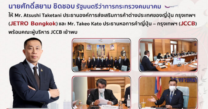 รัฐมนตรีว่าการกระทรวงคมนาคม หารือองค์การส่งเสริมการค้าต่างประเทศของญี่ปุ่น กรุงเทพฯ (JETRO Bangkok) และหอการค้าญี่ปุ่น – กรุงเทพฯ (JCCB) เพื่อสนับสนุนการดำเนินการภาคธุรกิจ-เอกชนญี่ปุ่นในไทย พร้อมนำเสนอข้อมูลการพัฒนาโครงสร้างพื้นฐานของไทย