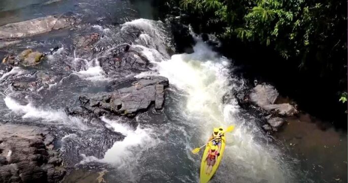 Paphayom Forest Rapids has become a bustling destination as tourists gather to paddle through the rapids, cool off in the waters.