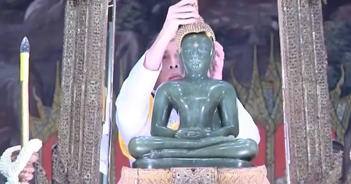 His Majesty King Vajiralongkorn of Thailand on Tuesday presided over a ceremony to change the seasonal attire of the Emerald Buddha at Wat Phra Kaew or the Temple of the Emerald Buddha.