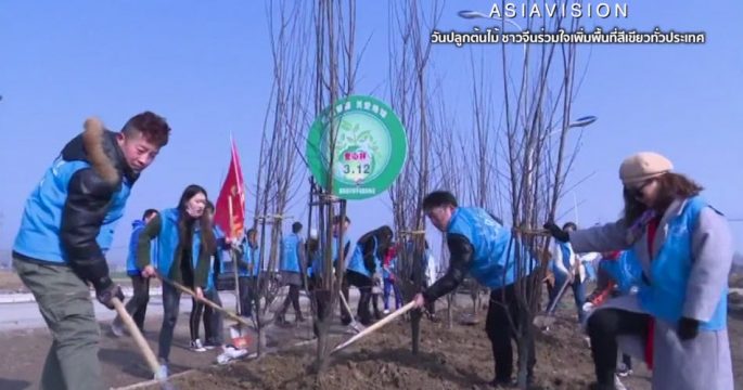 วันนี้เป็นวันปลูกต้นไม้ในประเทศจีน ชาวจีนในมณฑลต่างๆ ร่วมแรงร่วมใจกันปลูกต้นไม้เพื่อเพิ่มพื้นที่สีเขียวให้กับเมืองที่พวกตนอยู่อาศัยและในสวนป่าของท้องถิ่น