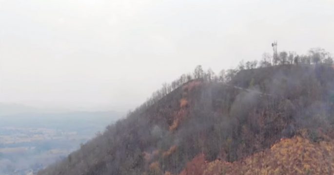 Related officials are still battling a forest fire at Phu Tok Mountain, a popular tourist destination in the Chiang Khan district of Loei province.