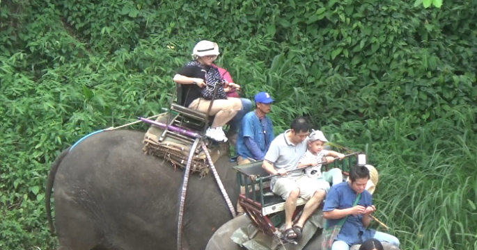 Elephant-Back Ride Remains Popular among Chinese Tourists 28 July 2019 12:43 FacebookFacebookXTwitterLINELine 14 Elephant-back tours in Thailand’s lush green jungle remain popular among Chinese visitors.