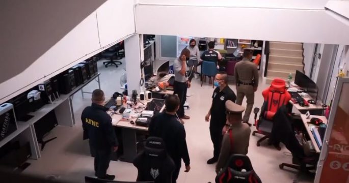 Nine people have been arrested for running an online gambling operation, mafia888.com, at five locations in Hua Hin resort town.