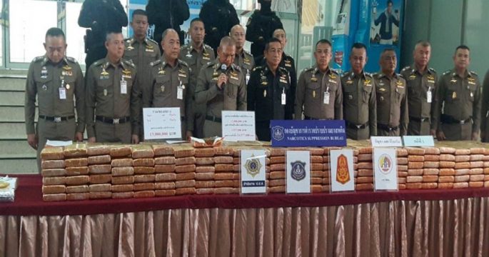 Officials arrested suspects and intercepted 600 kilograms of compressed marijuana on its way from a neighboring country to inner Bangkok.