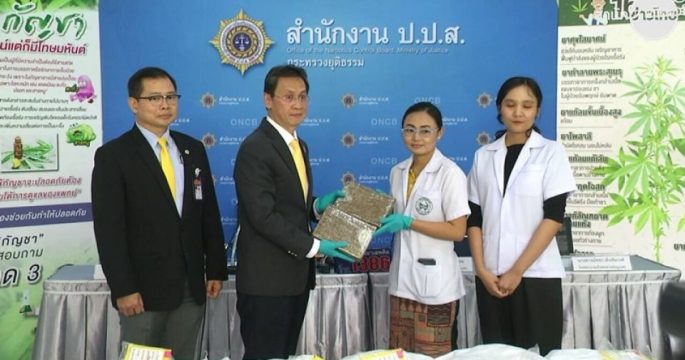 The Office of Narcotics Control Board handed over 600 kg of cannabis, seized from drug traffickers to Abhaibhubejhr Hospital to produce cannabinoid drugs.