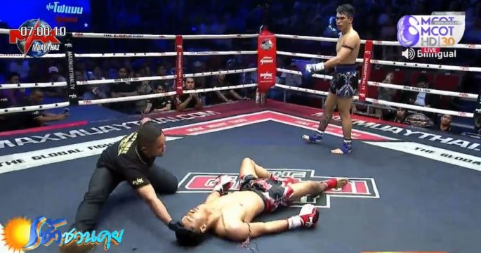 ผลแม็กซ์มวยไทยเมื่อเย็นวานนี้ (3 พ.ย.) รุ่น 76 กก. ใจเพชร ศิษย์เจ้าพ่อ นักชกไทย ชนะน็อก ซามูเอล กอช์ก จากอังกฤษ ในยกที่ 1