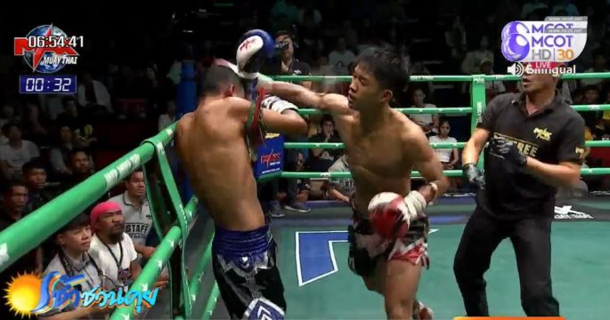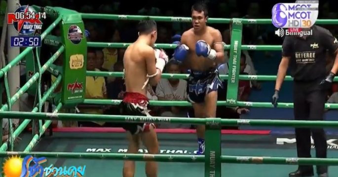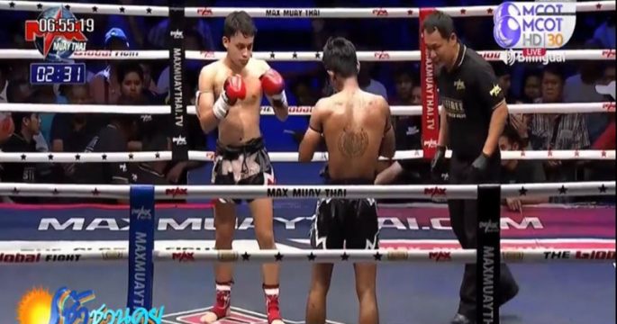 ก้องพยัคฆ์ เพ็ชรจินดา ฟันศอกใส่ เพชรวิมุติ ปั๊กมวยไทย จนแตก ชนะน็อกยกสอง ศึกแม็กซ์มวยไทย เมื่อเย็นวานนี้
