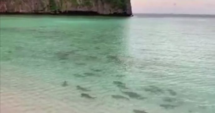 Thai marine park officials release video footage of blacktip reef sharks in the Maya Bay, famous for Hollywood hit “The Beach,” that has been closed for rehabilitation since June of last year.