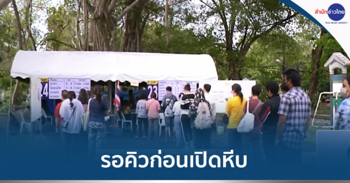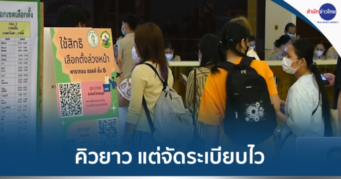 บรรยากาศเลือกตั้งล่วงหน้า ที่เขตเลือกตั้งที่ 2 เขตปทุมวัน ภายในห้างฯ สยามพารากอน ประชาชนแห่มาใช้สิทธิ คิวยาว แต่จัดระเบียบไว