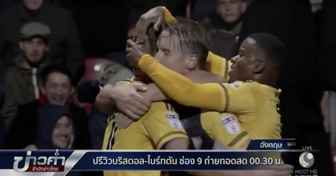 คืนนี้ช่อง 9 MCOT HD หมายเลข 30 ถ่ายทอดสดฟุตบอลเดอะแชมเปี้ยนชิพอังกฤษ ระหว่าง บริสตอล ซิตี้ ทีมอันดับ 6 พบ ไบร์ทตัน แอนด์ โฮฟ อัลเบี้ยน รองจ่าฝูง