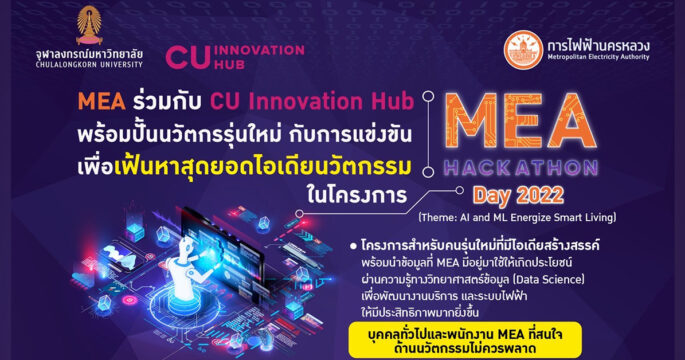 MEA ร่วมกับ CU Innovation Hub พร้อมปั้นนวัตกรรุ่นใหม่ กับการแข่งขันเพื่อเฟ้นหาสุดยอดไอเดียนวัตกรรมในโครงการ MEA Hackathon Day 2022 (Theme: AI and ML Energize Smart Living)