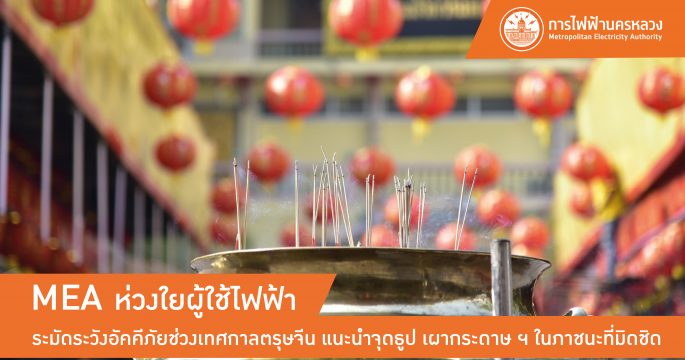 MEA แนะนำการใช้ไฟฟ้าอย่างปลอดภัยในช่วงตรุษจีน พร้อมเชิญชวนงดจุดธูป เผากระดาษฯ เพื่อลดปัญหาการเกิดมลพิษทางอากาศ PM 2.5