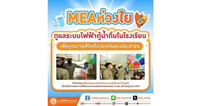 MEA ห่วงใย ดูแลระบบไฟฟ้าตู้น้ำดื่มในโรงเรียน เพื่อคุณภาพชีวิตที่ปลอดภัยของประชาชน