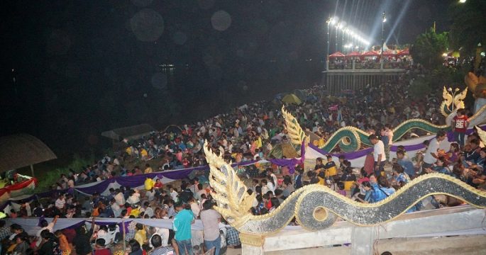Crowds of people enjoyed watching over 100 Naga fireballs that appeared over the Mekong River in the northeastern province of Nong Khai yesterday.