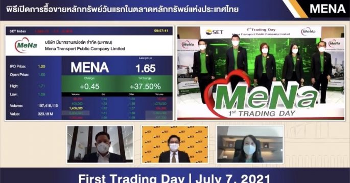 หุ้น MENA เปิดเทรดวันแรกที่ 1.60 บาท เพิ่มขึ้น 0.40 บาท (+33.33%) จากราคาขาย IPO ที่ 1.20 บาท/หุ้น