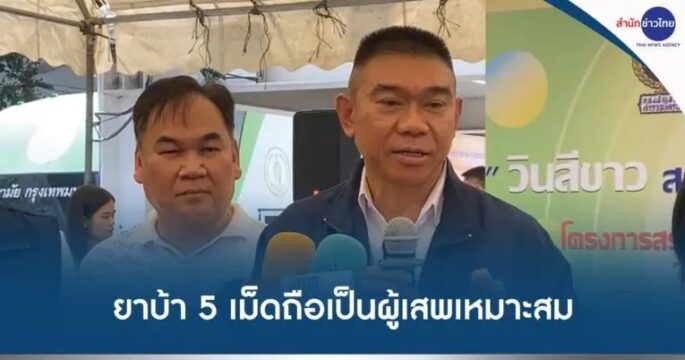 The plan to change the regulation to consider a person in possession of five methamphetamine or less as a drug user is appropriate, said acting secretary-general of the Office of the Narcotics Control Board Pol Lt Gen Panurat Lakboon.