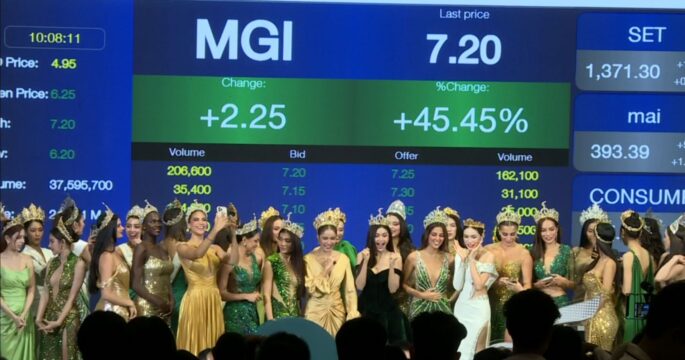 MGI คว้าลิขสิทธิ์ประกวดมิสยูนิเวิร์สไทยแลนด์ จาก JKN สัญญา 5 ปี 180 ล้านบาท “ณวัฒน์” ชี้สปอนเซอร์เข้าแล้ว 115 ล้านบาท มั่นใจคุ้มทุนปีแรก ยันไม่ขายหุ้น MGI “แอน-จักรพงษ์” เตรียมนำเงินหนุนแผนฟื้นฟู นักลงทุนจับตา