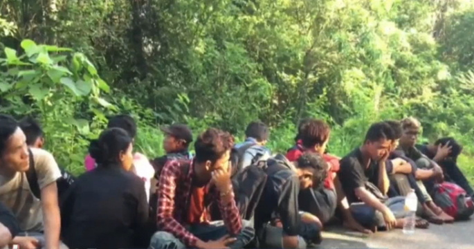 Police and military officers rounded up 18 illegal migrant workers in the forest in Sadao district, Songkhla, Thailand.