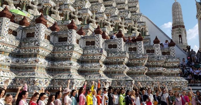 กองประกวดมิสยูนิเวิร์ส 2018 พา 59 สาวงามล่องเจ้าพระยา ชมความงดงามพระปรางค์วัดอรุณ