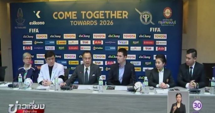 กรุงเทพฯ 4 เม.ย.60- นายกสมาคมกีฬาฟุตบอลฯ ร่วมลงนามข้อตกลงกับบริษัท เอคโคโน่ เมธอด เซอร์วิส ในการพัฒนาวงการฟุตบอลไทย สู้ศึกฟุตบอลโลก 2026 พล.ต.อ.สมยศ พุ่มพันธุ์ม่วง นายกสมาคมกีฬาฟุตบอลฯ ร่วมลงนามบันทึกข้อตกลงความร่วมมือ หรือ MOU ร่วมกับบริษัท เอคโคโน่ เมธอด เซอร์วิส บริษัทด้านการจัดการฟุตบอลจากบาร์เซโลนา ประเทศสเปน โดยมี มิเกล ฟาร์เรโร ตัวแทนจากเอคโคโน่ ร่วมลงนาม โดย ฟาร์เรโร เชื่อว่า หากพัฒนาโครงสร้างของฟุตบอลไทยไปถูกทาง โดยเฉพาะระบบเยาวชน จะทำให้ทีมชาติไทยประสบความสำเร็จ และไปเล่นฟุตบอลโลกในอีก 9 ปีข้างหน้า คือในปี 2026 ได้ตามเป้าหมาย โดยจะเข้ามาดูแลทีมเยาวชนทีมชาติไทยทุกระดับ ตั้งแต่รุ่นอายุไม่เกิน 14 ปี, รุ่นอายุไม่เกิน 16 ปี, รุ่นอายุไม่เกิน 18 ปี และรุ่นอายุไม่เกิน 21 ปี  ด้าน พล.ต.อ.สมยศ […]