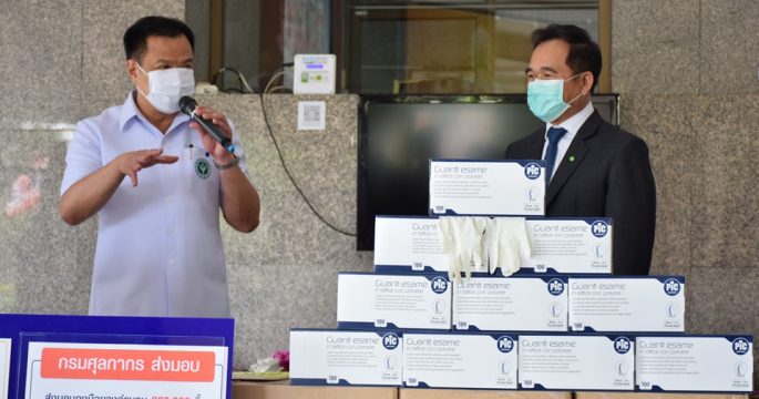 กรมศุลกากร ส่งมอบถุงมือยางและหน้ากากอนามัยแบบN95 ของกลางที่ยึดได้กว่า 2 แสนชิ้นให้กับกระทรวงสาธารณสุข เพื่อประโยชน์ในสถานการณ์แพร่ระบาดของโรคโควิด-19