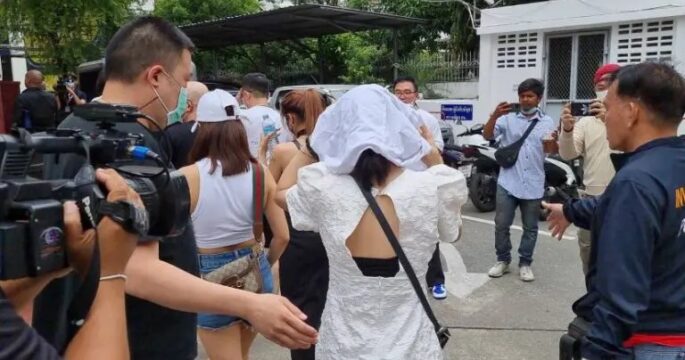 About 100 policemen raided a building in Charoen Rat area of Sathon district and found a lot of foreigners and narcotics.