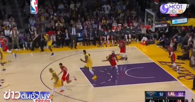 บาสเกตบอลเอ็นบีเอ สหรัฐ แอลเอ เลกเกอร์ส เจ้าถิ่นในชุดสีเหลืองเปิดบ้านพบ นิว ออร์ลีน เพลิแคนส์ โดย เลกเกอร์ส เอาชนะไปได้ 123-113 คะแนน เก็บชัยนัดที่ 28 เป็นจ่าฝูงสายตะวันตก
