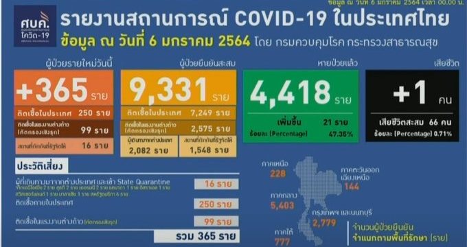 Thailand on Wednesday reported 54 more Covid fatalities and 6,519 new cases.