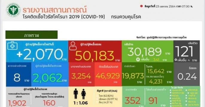 Thailand on Friday reported 2,070 new coronavirus cases, the highest number of daily cases since the pandemic started.