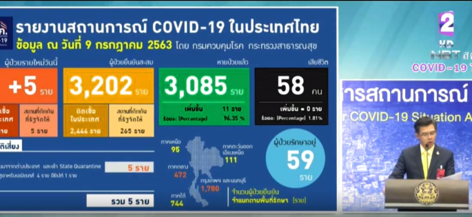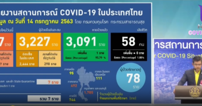 BANGKOK, July 6 (TNA) – The Center for COVID-19 Situation Administration reported five new cases of the coronavirus disease 2019 who returned from Kuwait. The total of confirmed cases rose to 3,195. One earlier detected patient recovered over the past 24 hours and raised the total recovery cases to 3,072. Sixty-five patients were at hospitals […]