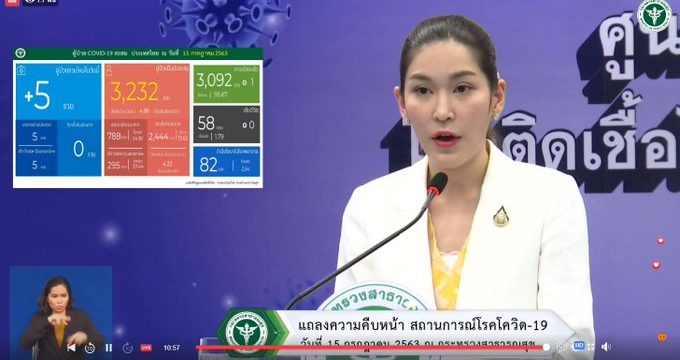 Thailand on Wednesday reported five new imported cases of Covid-19, raising the total cases in the country to 3,232.