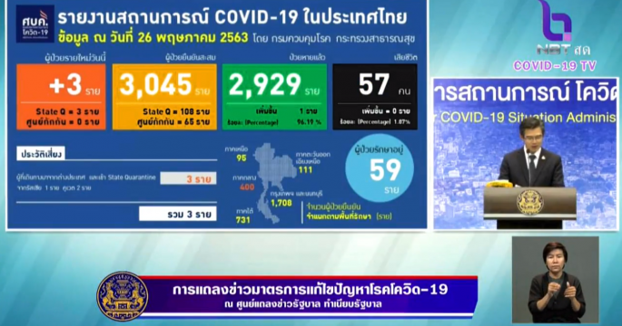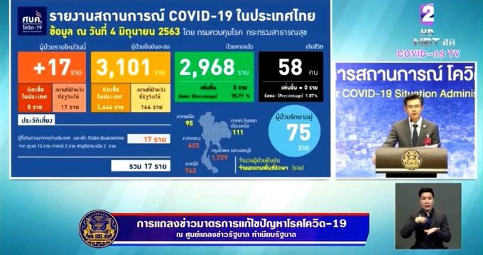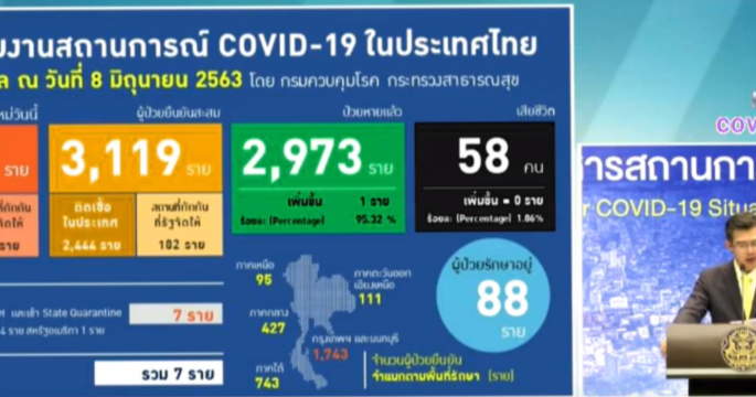 Thailand reports three new infections of Covid-19. All of them are returnees from abroad and placed under state quarantine.