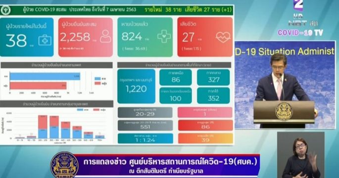 Thailand reported new confirmed coronavirus infections rose by 38 to 2,258 on Tuesday with one more death, bringing the toll to 27.
