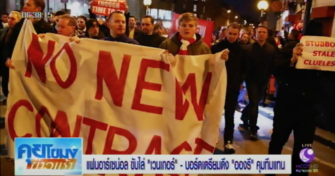กลุ่มแฟนบอลอาร์เซนอลเดินทางมาบริเวณหน้าสนามเอมิเรตส์ สเตเดียม เพื่อขับไล่ อาร์แซน เวนเกอร์ออกจากตำแหน่ง ก่อนเกมยูฟ่า แชมเปียนส์ ลีก นัดพบ บาเยิร์น มิวนิค ขณะที่บอร์ดบริหาร วางแผนดึง เธียร์รี อองรี คุมทีมแทน