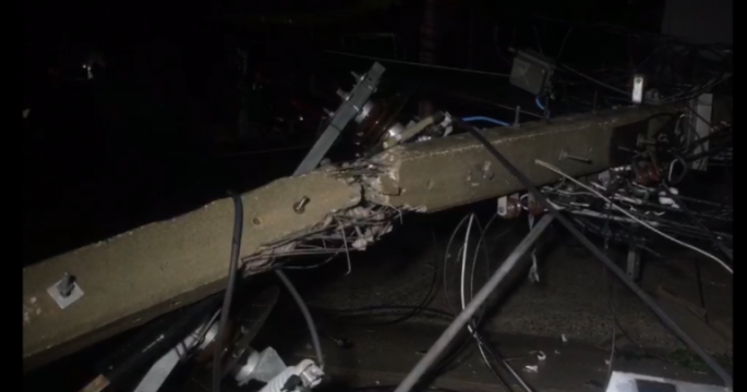 A heavy rainstorm knocked down dozens of electric poles Wednesday night, causing blackout in Nonthaburi province.