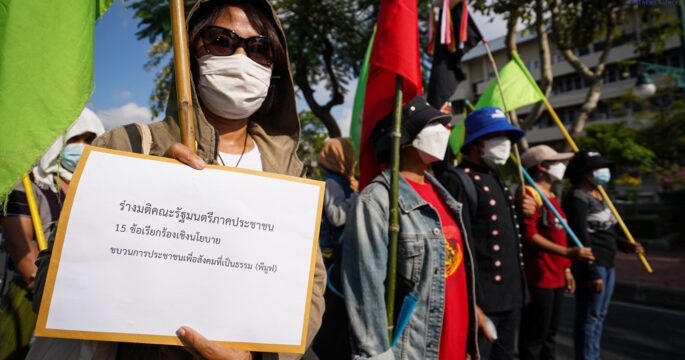 Leaders of the People’s Network for a Just Society (P-Move) brought their demonstrators from the United Nations complex to Government House to pressure the cabinet to consider their 15 demands.