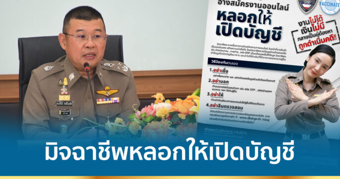 ผอ. PCT เตือนภัยมิจฉาชีพหลอกให้เปิดบัญชี สมัครงานออนไลน์ งานไม่ได้ เงินไม่มี กลายเป็นผู้ต้องหาถูกดำเนินคดี