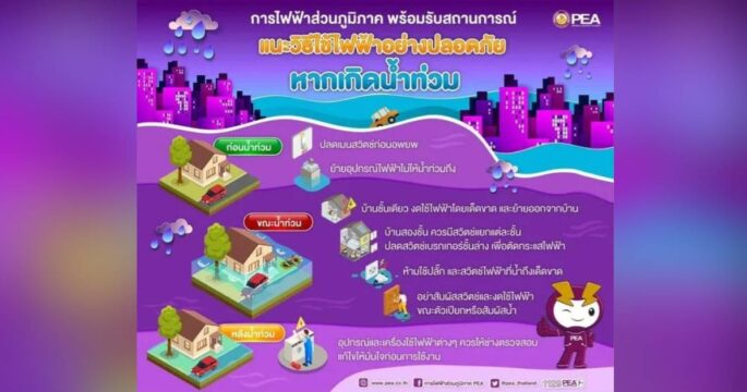 PEA แนะนำการใช้ไฟฟ้า กรณีมีน้ำท่วมหรือน้ำท่วมขัง