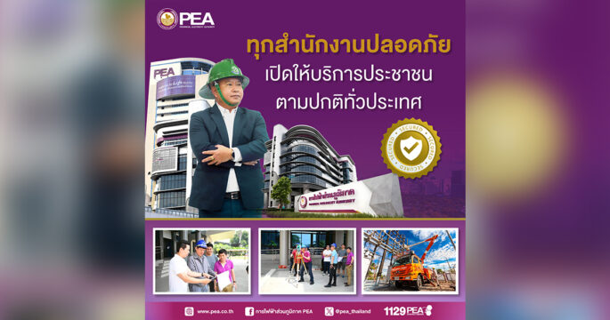 PEA ตรวจสอบความปลอดภัยทุกอาคารทั่วประเทศ เปิดให้บริการปกติในวันทำการ พร้อมให้บริการประชาชน