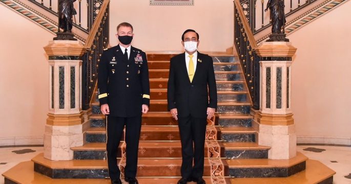 Prime Minister Gen. Prayut Chan-ocha welcomed U.S. Army Chief of Staff James C. McConville at Government House on Friday.
