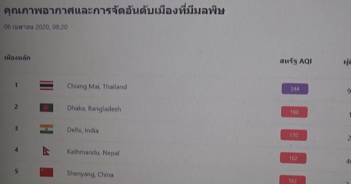 เชียงใหม่ค่าฝุ่นพิษพุ่งหลายพื้นที่ อากาศแย่สุดในโลก หมอกควันปกคลุมหนาแน่น มองไม่เห็นดอยสุเทพ บริเวณ รพ.เวียงแหง ค่า PM 2.5 สูงถึง 580 ไมโครกรัม/ลูกบาศก์เมตร
