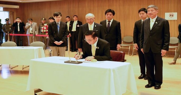 Prime Minister Prayut Chan-ocha signed his name in a well-wishing book on the occasion of Japan having its new emperor.