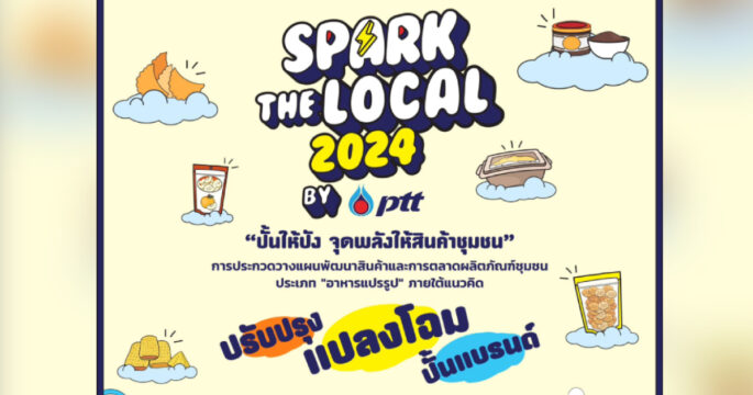 ปตท. ขอเชิญชวนผู้สนใจเข้าร่วมการประกวด Spark the Local 2024 by PTT “ปั้นให้ปัง จุดพลังให้สินค้าชุมชน” วางแผนพัฒนาสินค้าและการตลาดผลิตภัณฑ์ชุมชน ประเภท “อาหารแปรรูป” ภายใต้แนวคิด “ปรับปรุง แปลงโฉม ปั้นแบรนด์” ชิงเงินรางวัลรวม 240,000 บาท