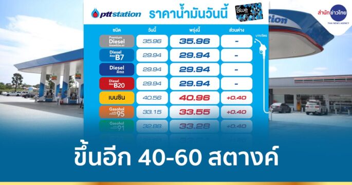 PTT Station แจ้งปรับขึ้นราคาน้ำมันทุกชนิด 40-60 สตางค์/ลิตร มีผลวันที่ 24 ก.พ. 65 ตั้งแต่เวลา 05:00 เป็นต้นไป