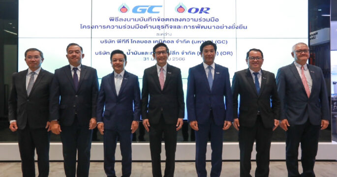 กลุ่ม ปตท. ผนึกกำลังสร้างความแข็งแกร่งยอดสร้างมูลค่าเพิ่มทางธุรกิจและการดำเนินงานอย่างยั่งยืน ลงนามบันทึกข้อตกลงโครงการความร่วมมือด้านธุรกิจและการพัฒนาอย่างยั่งยืน ระหว่าง GC และ OR