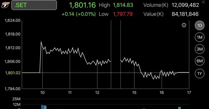 หุ้นไทยบวกเล็กน้อย 0.14 จุด หุ้น ปตท.ช่วยกระคอง มูลค่าซื้อขายหนาแน่นกว่า 84,000 ล้านบาท