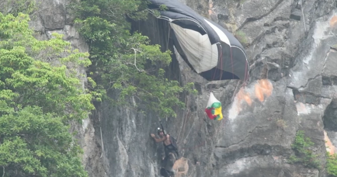 An Austrian parachute jumper has been safely rescued after he was dangled on a cliff in Phatthalung province, southern Thailand.