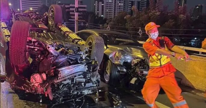 The police pressed charges against the Bentley driver for reckless driving that causes damage and injuries to others after the accident, which involved three vehicles on an expressway early Sunday.