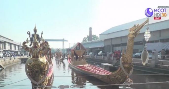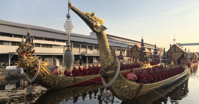 The royal barge procession for His Majesty the King will glide along the Chao Phraya River for the royal ‘kathin’ ceremony at the Temple of the Emerald Buddha.