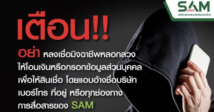 กรุงเทพฯ 10 เม.ย.- SAM แฉกลโกงมิจฉาชีพแอบอ้างเป็น SAM หลากหลายรูปแบบ เตือนภัยประชาชน อย่าหลงเชื่อโอนเงินหรือกรอกข้อมูลส่วนบุคคล แนะนำตรวจสอบโดยตรงที่ SAM